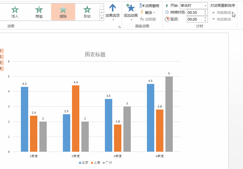 2、选取图表 - 动画 - 擦除