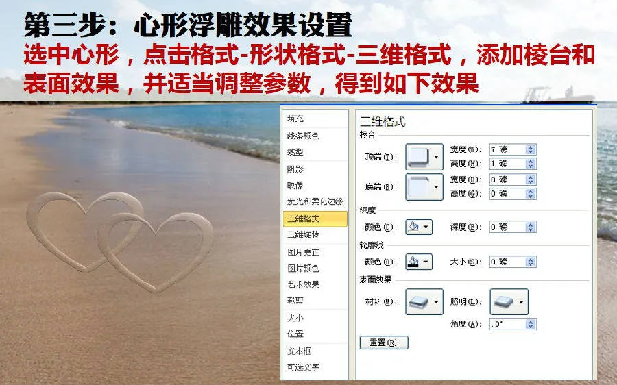这一期的教程是我发现网友@ILFlora 三分钟投稿作业很有创意,他是模仿我们的浮雕字效果,但是他做了发挥,把字变成了非常有爱的心形图片,我觉得非常给力,鼓励他完成一期教程分享。