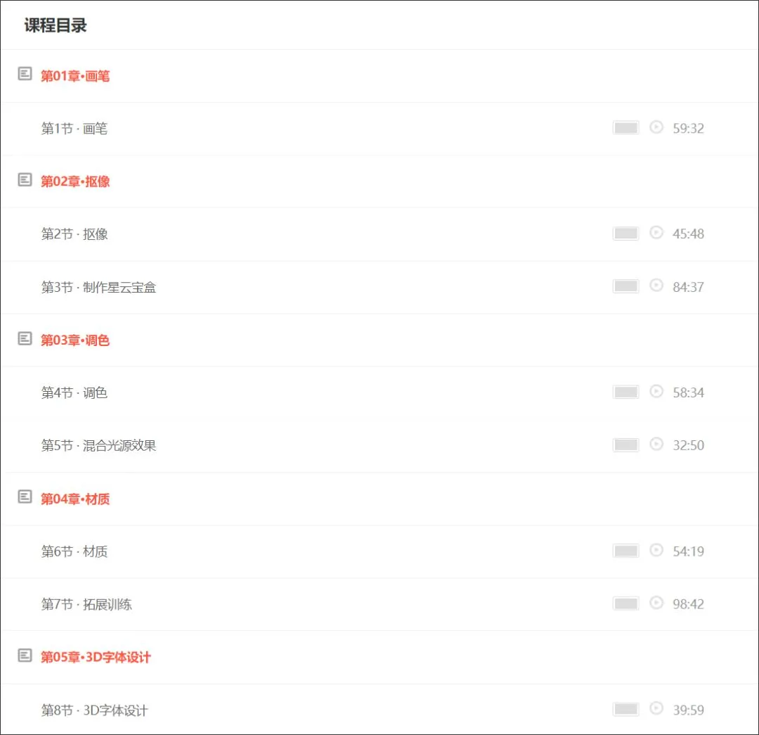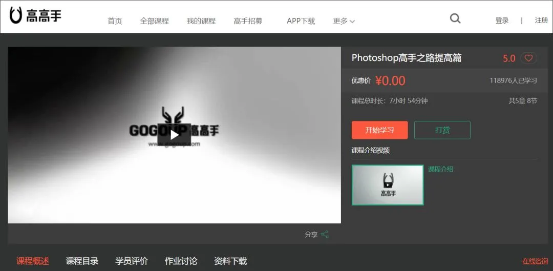 这是在高高手教程网站中的,一套完整免费的 PS 课程,我完整地看过两遍,毫不客气地说,秒杀国内一大波收费课程,强烈推荐。