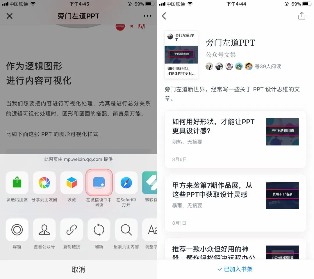 在微信读书中,整合一些公众号的 PPT 教程