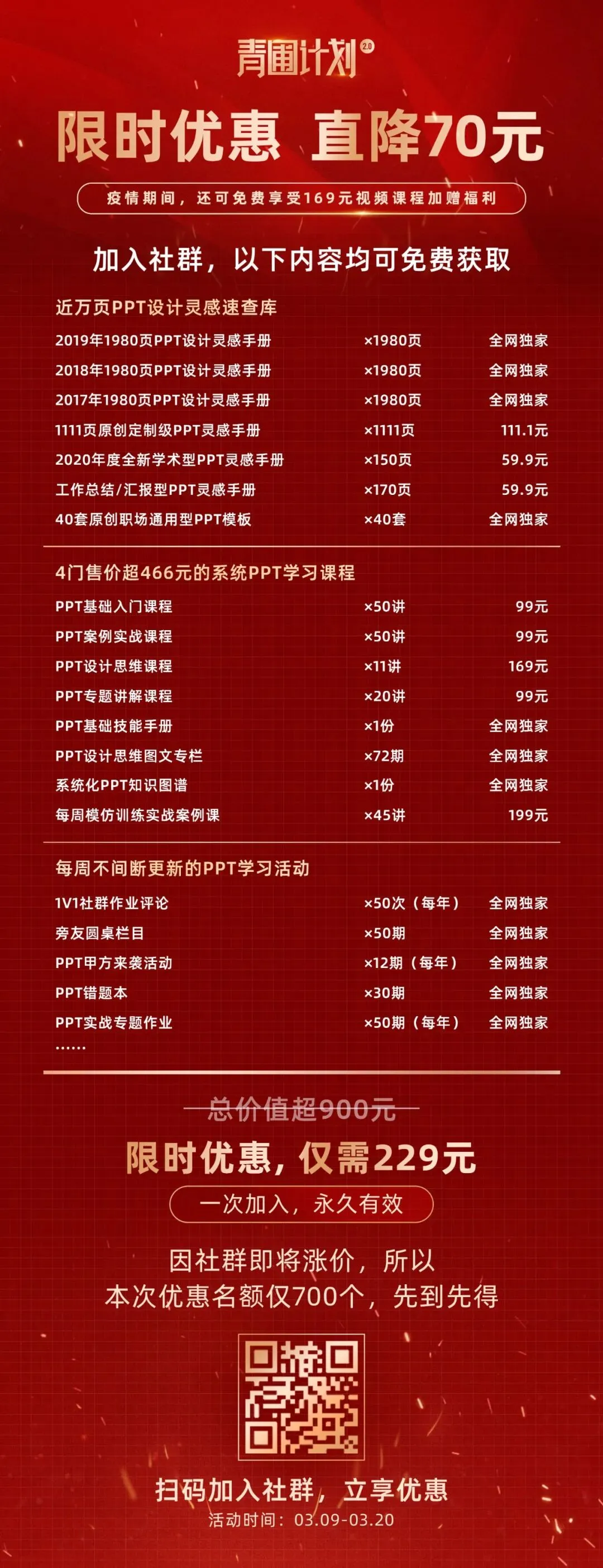 旁友圈PPT学习社群限时优惠中,优惠名额有限,先到先得