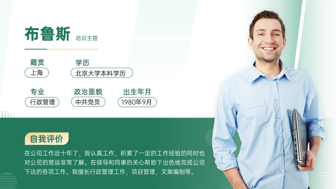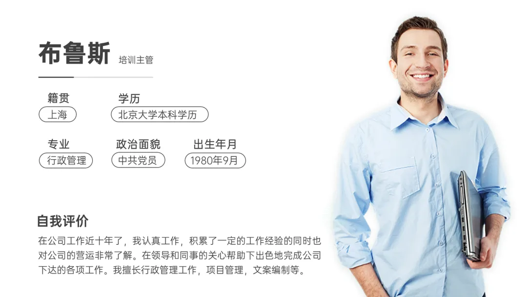 提升了页面空间感的同时,放大了图片,让内容更加清晰可观。给它简单的加上个花(疯)里(狂)胡(打)哨(脸)的色块,因为主人公是位帅气的歪果仁哥哥,所以国际元素英哥李斯(English)不能少呀!虽然但是,奖状的底部还是空荡荡的,看起来不太结实,仿佛没什么依靠点。延伸一下人物介绍页的氛围思路,给页面添加上色块点缀。所以,我去马路对面的工地上找来了两个线条,压一下两个角~整体看起来就更加饱满有层次了呢~我可真是个小天才!三个段落看起来不太工整,这时候可以加个容器来承载内容,方便观看的同时,也给每段内容独立的空间。