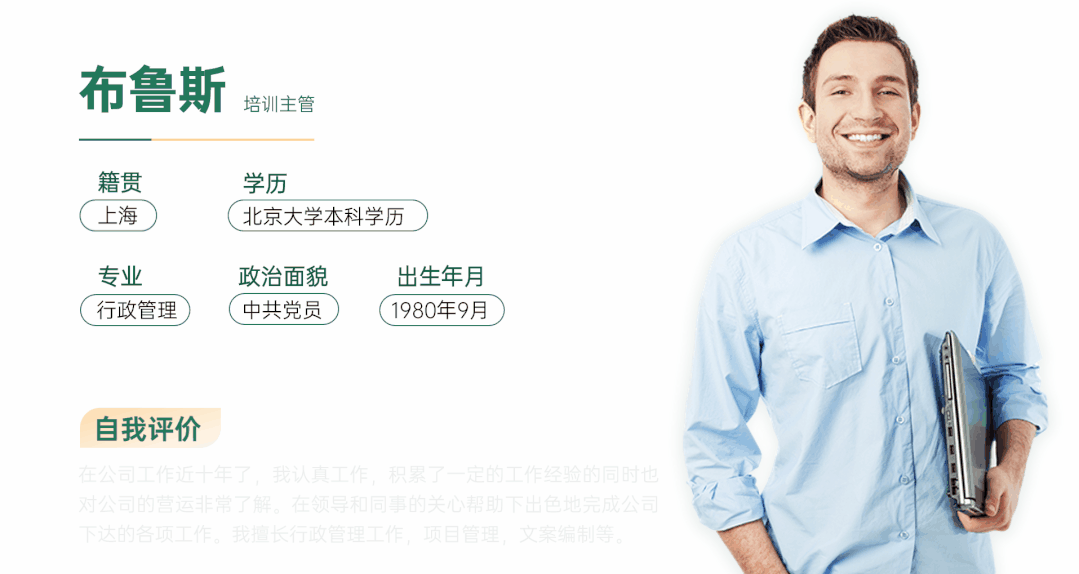 改稿之前我们先确定一下页面的配色。最近在逛花瓣网的时候,相中了这一张 banner,决定这次改稿就采取它的配色方案。这里我选择了绿色作为主色,同色相明度亮一些的绿色作为辅色,浅黄色作为点缀色。根据人们阅读视觉的习惯性,我选择用左文右图的方式来做大致的布局。然后来看一下文案,文案分为两个部分,基本信息+自我评价,在设计时放在上下两个区域。