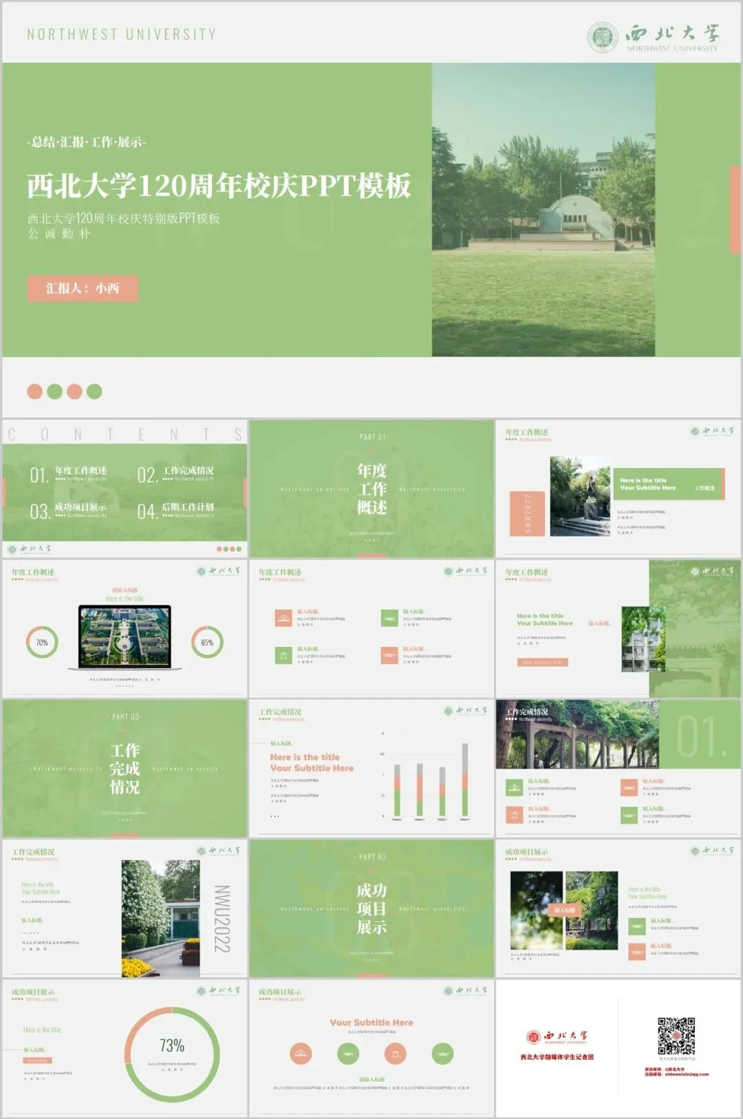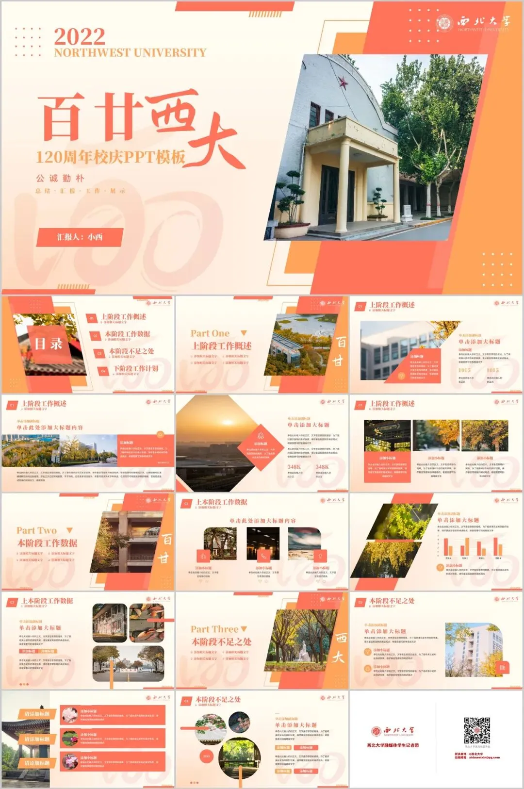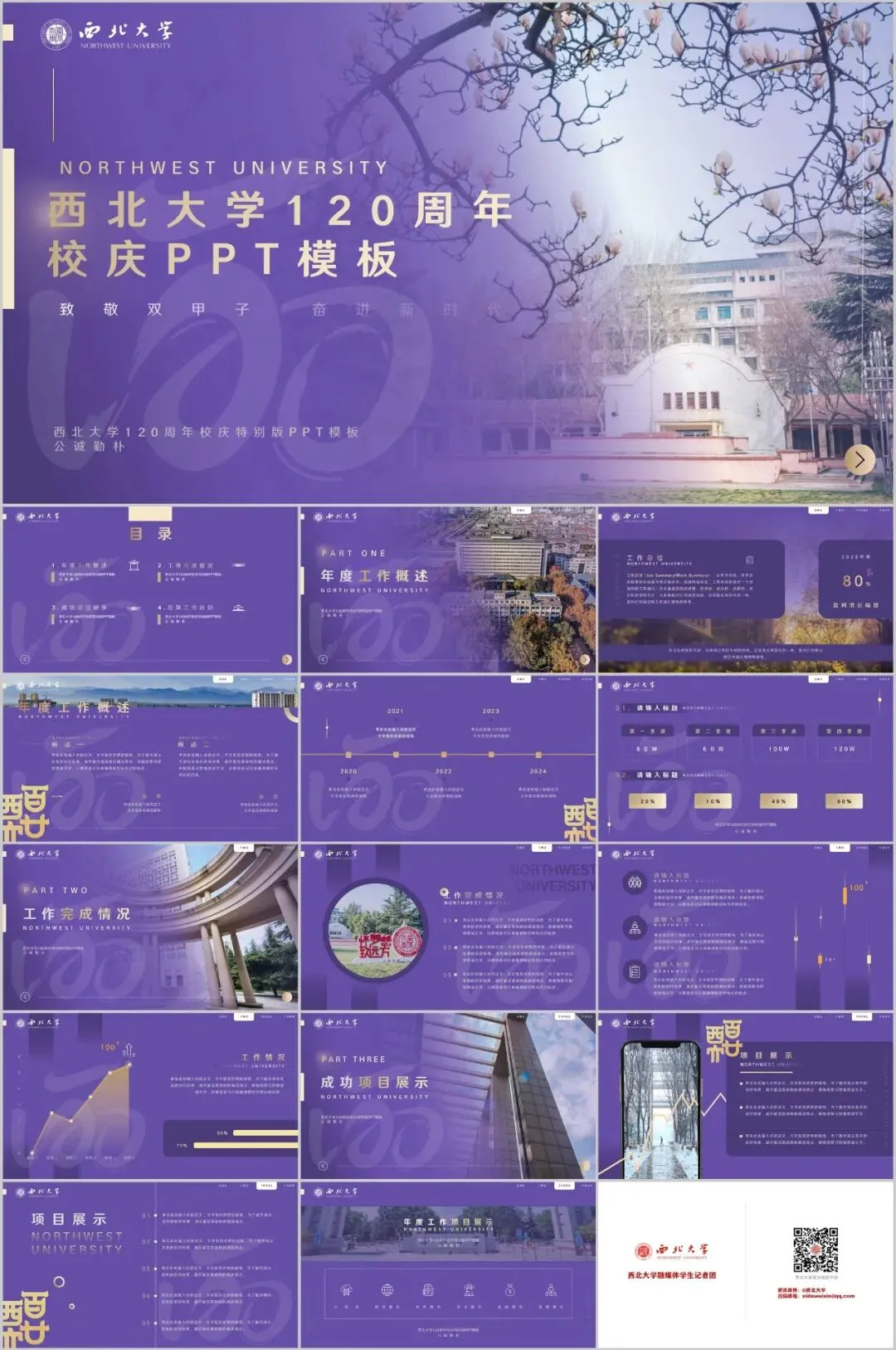 “官微菌”精心制作了10套高颜值校庆专属PPT模板