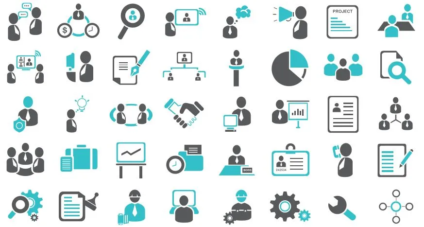 PPT自绘图标、长阴影扁平化矢量商务图标等