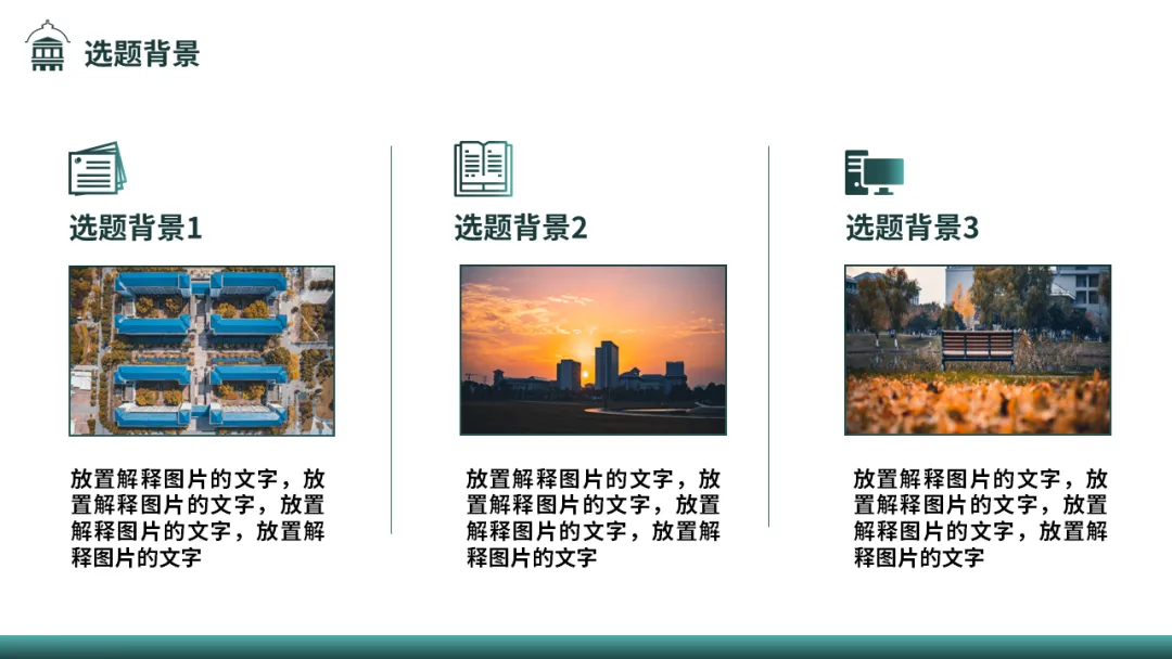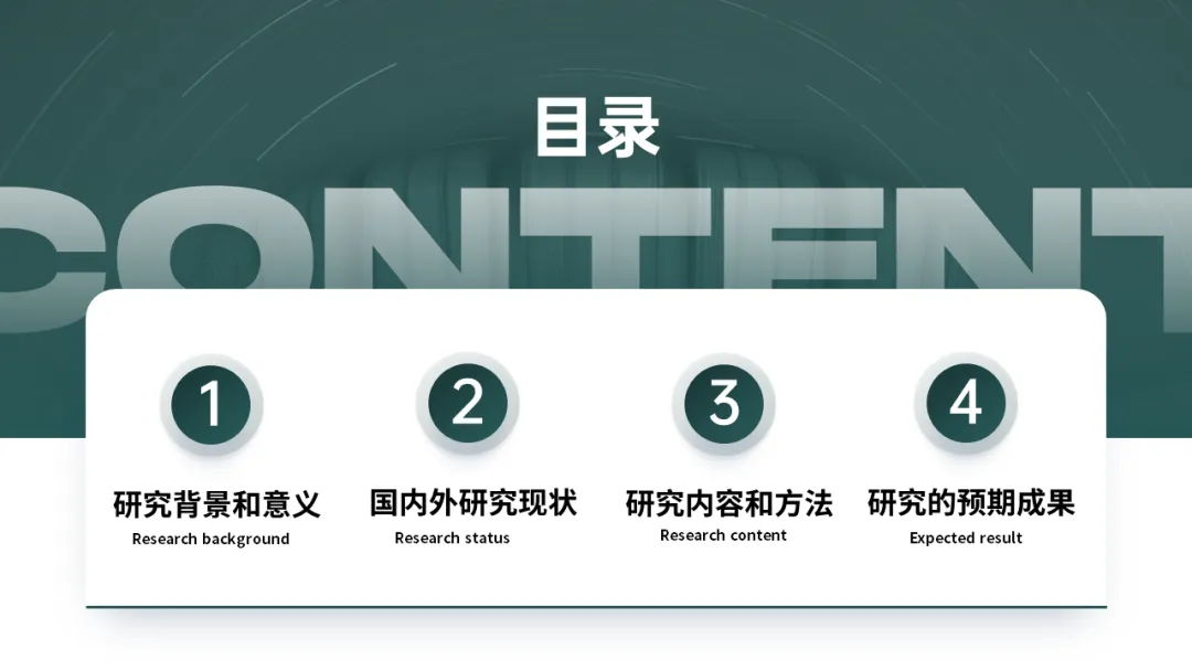 立项/结项/答辩模板提供了深墨绿、深邃蓝和夜幕紫三种不同的配色,能够最大限度满足同学们在不同场景下的需求。模板设计精美,重点突出,结构清晰,是立项/结项答辩的不二之选。