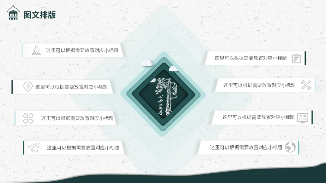 拥有醒目大写序号的过渡标题页使你的调理更加清晰。与此同时,承上启下,更好地表达你的观点和特色。