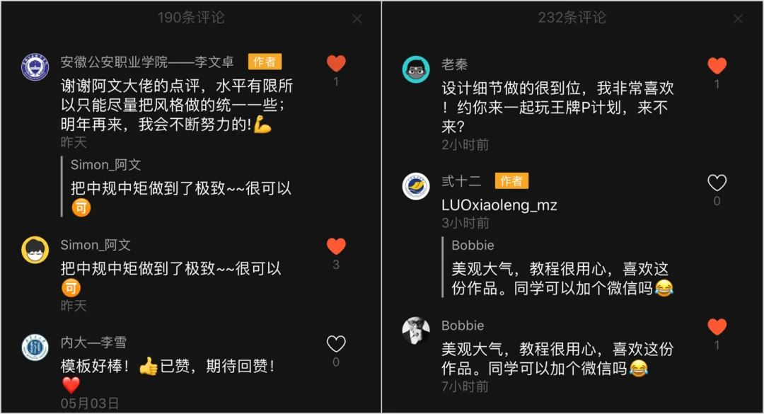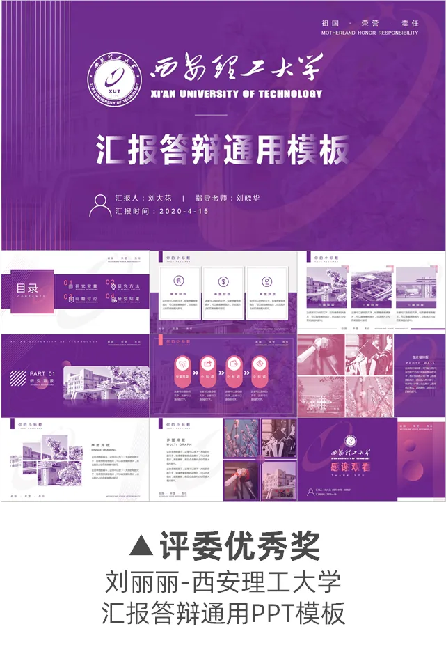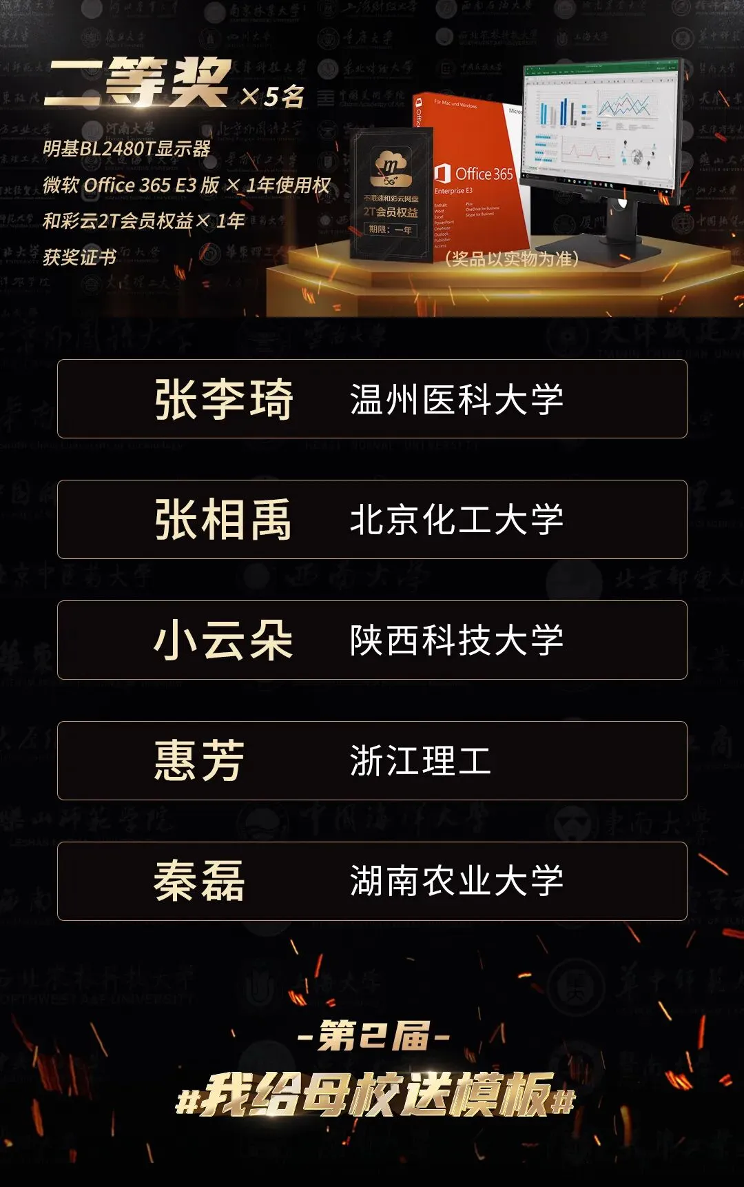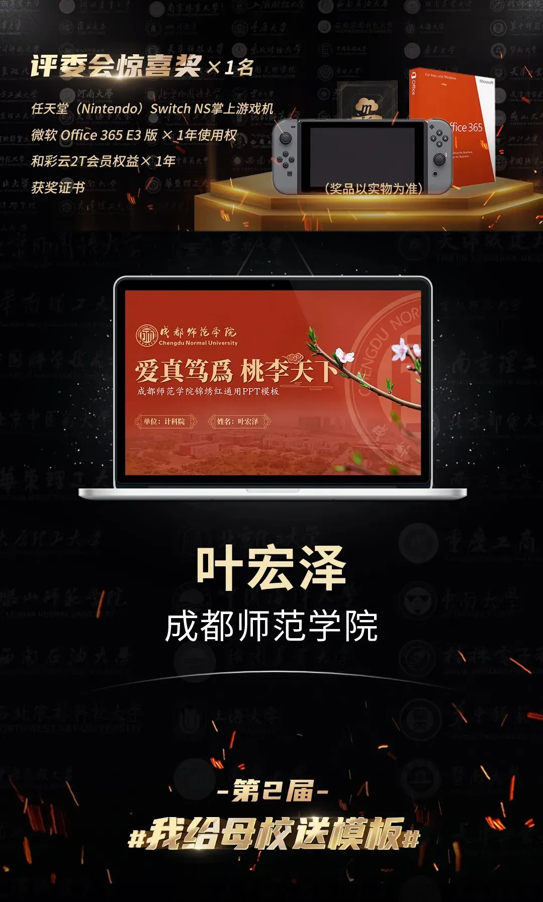 关注星标★不迷路最近持续关注秋叶 PPT 的粉丝肯定知道,我们最近干了件大事!一个月前,我们联合微软听听文档、iSlide、中国移动和彩云发起了第二届#我给母校送模板#大赛。在这一个月时间里,我们一共聚集了全球近 1000 所高校的学子,给自己的母校送模板。作品提交截止到 4 月 20 日,短短 12 天,我们的 PPTer 为母校献上了近 900 份 PPT 模板!每一位选手都将自己的回忆和情感注入自己的 PPT 模板作品和听听文档中,讲述了设计理念与模板背后的故事,打开一份份模板,就好像打开了一份份母校记忆和希冀。通过 6 位专业评委层层初筛后,508 份优秀作品入围决赛,角逐最终的 53 个奖项!过去的一周里,选手们收到了来自全国各地的网友、同学的打 call!@老秦、@Simon_阿文、@Bobbie、@张鹏 等评委老师也来点评了选手们的作品~能因为一个比赛,因为一份 PPT 模板,带来这么多改变真的是太棒了!其他的获奖作品同样优秀,受限于篇幅,我们将在后续推送里向大家呈现!