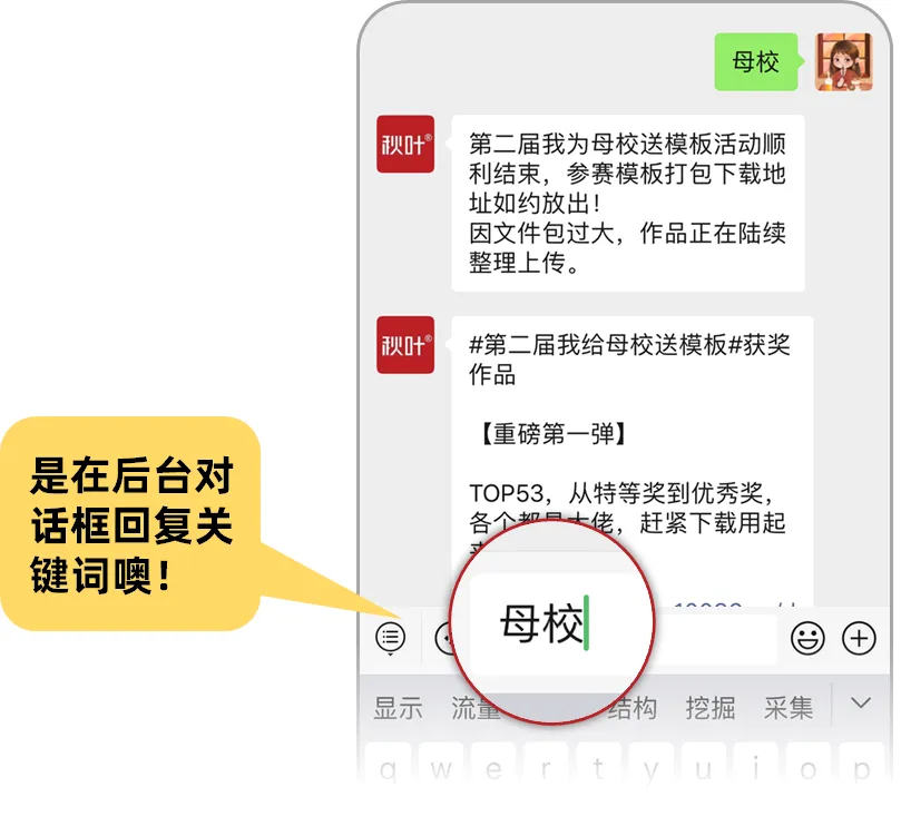 关注「秋叶 PPT」微信公众号,回复关键词「母校」,可直接获取优秀作品打包下载地址!另外,本次参赛者的优秀作品,将在近日登陆微软 OfficePLUS 网站哦~这群大学生,用自己所擅长的技能——PPT,为自己的母校献上一份礼物。这些模板就像是种子,期待它们在各个学校甚至各行各业,茁壮成长,如我们希望的那样,帮助到更多人。而我更希望,下一次的参赛选手里,正在阅读文章的你,或者刚下好模板的你,也会是其中一员!作为联合主办方之一,为了延续大家为母校打 call 的热情,iSlide 来帮你加码助力啦!我们为本届大赛落选的高校,发起了#iSlide 助力母校模板#投票,得票 TOP 30 的学校,将获得由 iSlide 专业 PPT 设计团队定制的学校模板一套!iSlide 定制模板,将严格按照 7 大设计标准规范设计:用诚挚匠心为你的母校免费打造价值 6900 元的专业模板~你的学校没有选手参赛?虽然 PPT 做的不好,但还是想给母校送模板?没关系!来留言区留下你的母校,我们将把它加入到投票列表中!投票规则:一人有且仅有一票,欢迎拉票,禁止使用机器人等作弊手段
