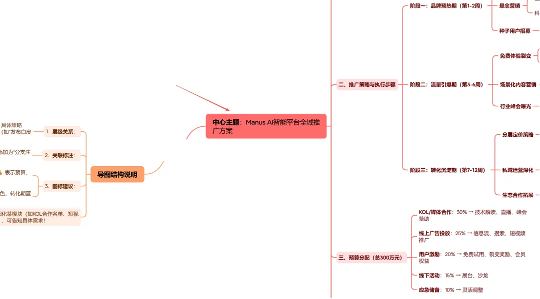 今日,引入以制作Manus产品推广方案为例 文案 + 思维导图 + PPT制作