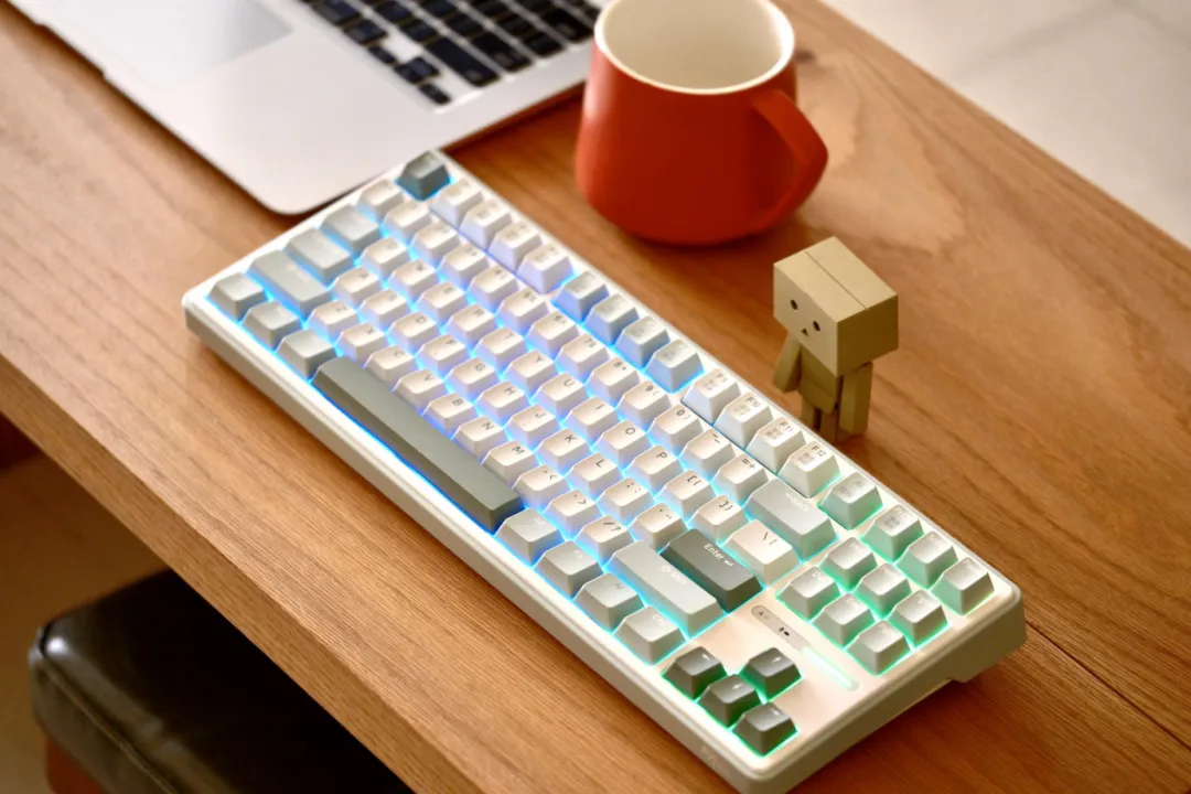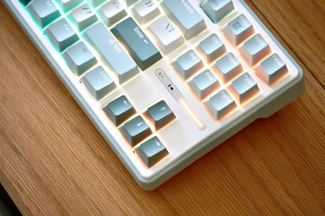 尽管AI功能抢眼,但RK R87PRO并未舍弃机械键盘的“基本功”。其搭载的自研冰川轴,采用聚光镜设计与改良导轨,触发力度仅45gf,手感轻盈顺滑,配合Gasket结构与五层消音填充,敲击声纯净如“麻将音”,办公场景不扰人,游戏连招零延迟。87键紧凑布局+全键无冲设计,则兼顾了桌面空间与多指操作需求。