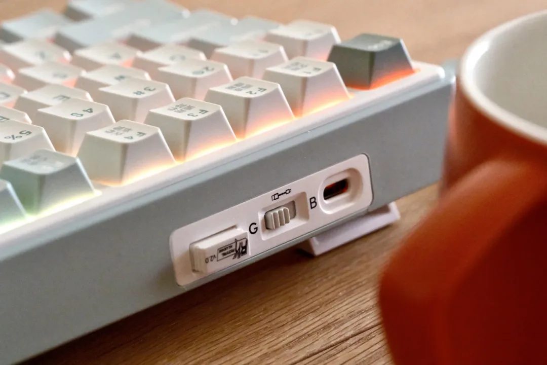 外观上,键盘延续了RK经典的硬朗线条,侧翼RGB灯带支持自定义光效,暗光环境下氛围感拉满。而隐藏式电量指示灯(通过数字键亮灯数量显示剩余电量)等细节,更凸显人性化考量。