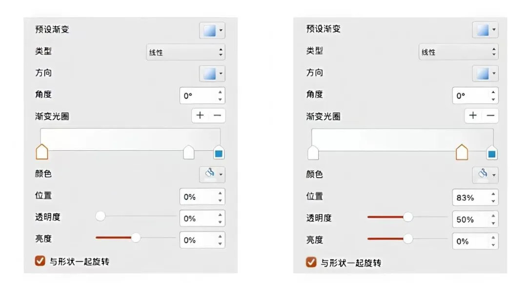 将第二个矩形设置渐变 下方是参数~