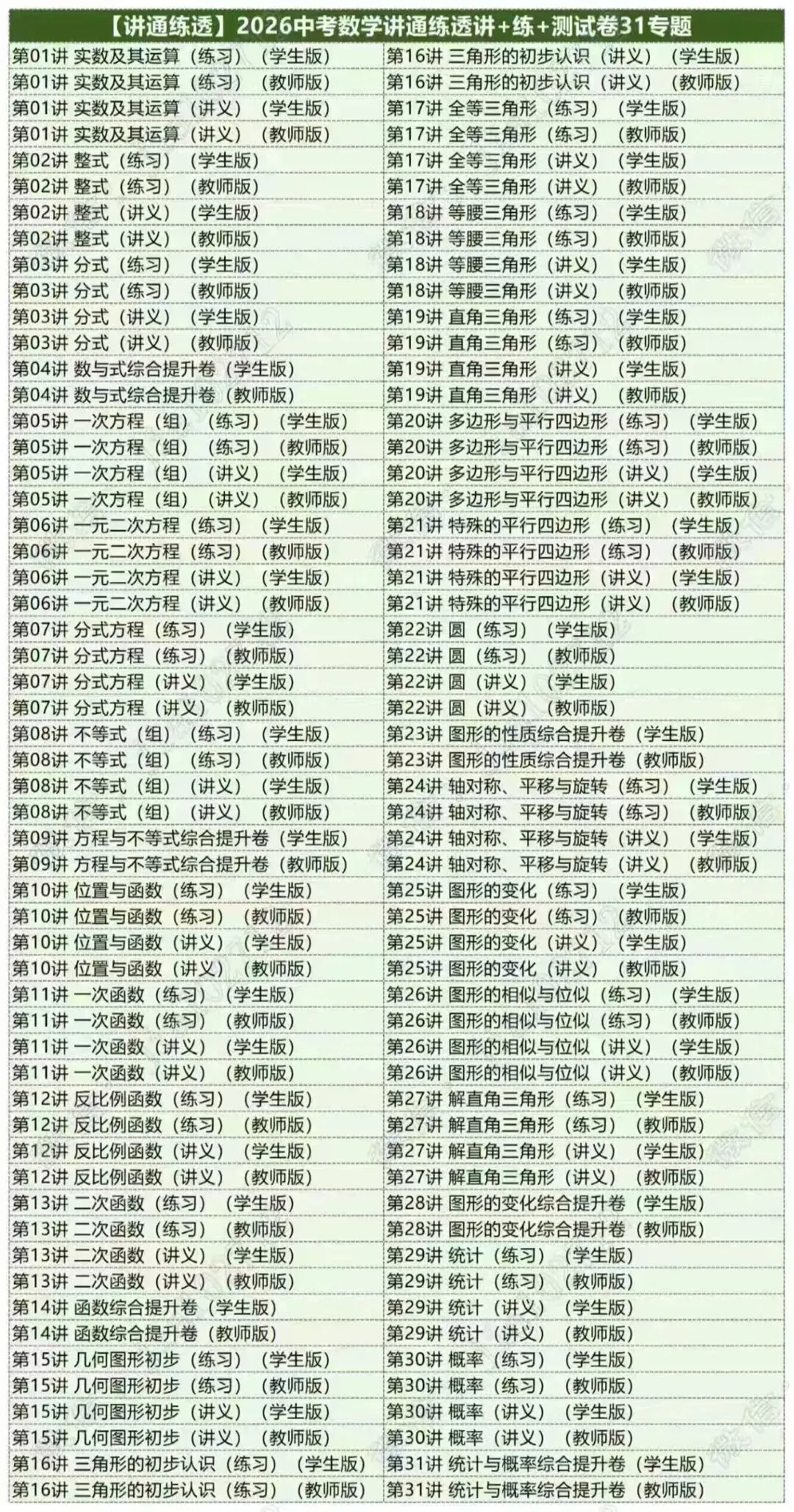 1.【讲通练透】2026中考数学讲通练透讲+练+测试卷 31专题,一讲配一练,讲义内含知识导航、多种题型典例分析,配套大量真题练习