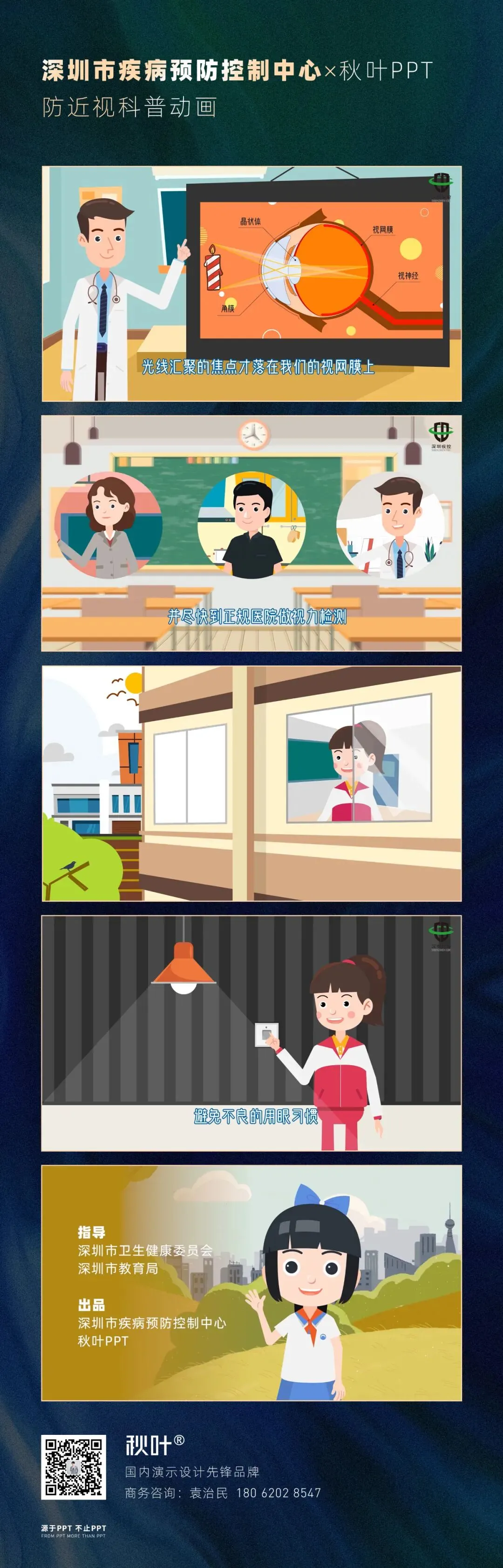 其中,我们有幸与深圳市疾病预防控制中心开展了两次合作,分别就新冠防疫、防近视两个主题,制作了 3 支科普动画视频。