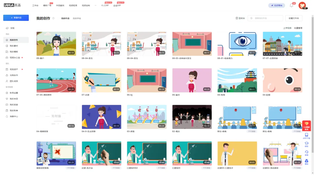 「来画」是一个特别好用的在线视频创作平台,内置很多场景和动态元素,将各元素拖拽到画布中,设置好简单的参数,就可以做出一段生动的视频片段。