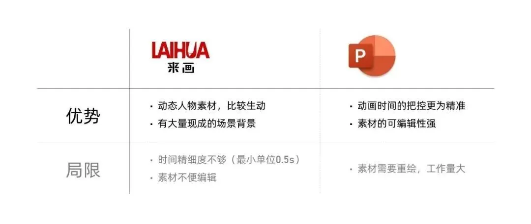 对我们来讲,来画和 PPT 各有优势: