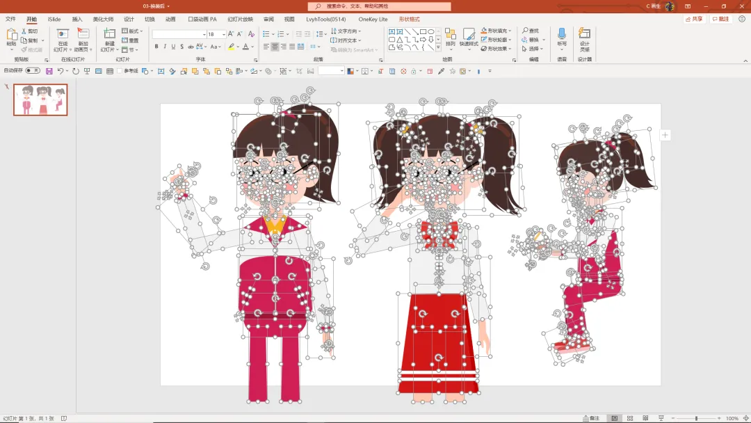 比如某些需要在 PPT 刻画的场景和动画,为了保持角色的统一,将一个在来画里的动态人物素材「丧心病狂」地在 PPT 里复刻,并改变多种状态: