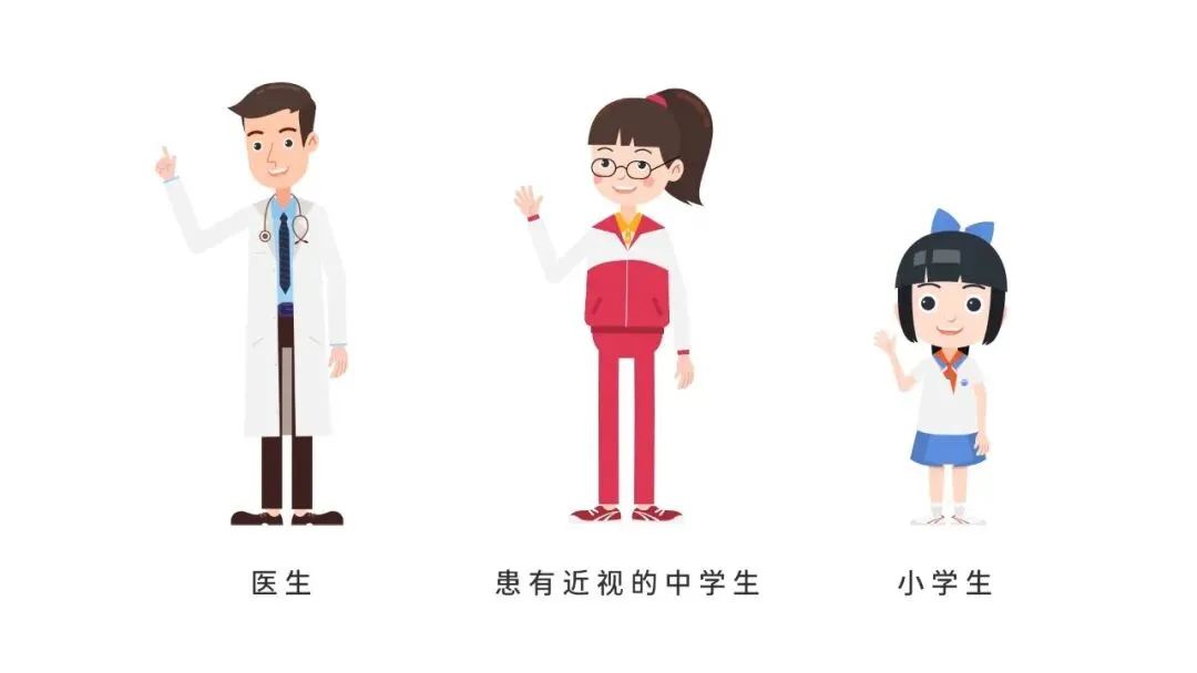 既然是故事,就需要有角色,而为了保证故事的连贯性,角色的形象也需要固定下来,在《近视防护》中,固化了 3 个主要角色: