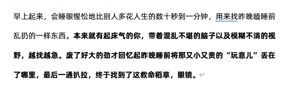 可以看到这里是想用一个起床找眼镜的场景,表达近视让人烦躁。