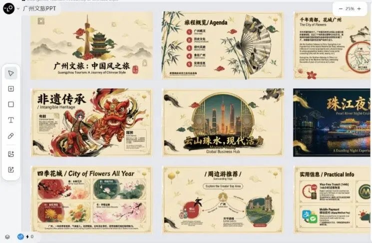 我们可以先来看看【PPT灵感创作架构师】与Lovart.ai合作生成的高质量PPT,从需求提出到制作脚本输出,再到让人惊艳的PPT生成,整个过程只要三分钟!
