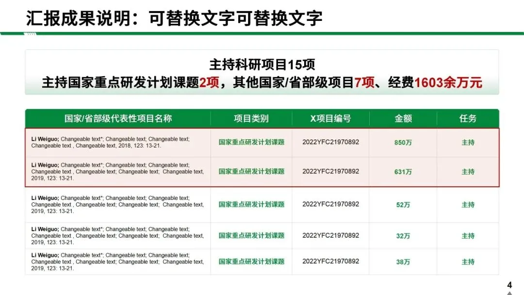 以上为此模版部分预览图,旨在为您提供设计思路与风格参考,希望对您的答辩PPT制作有所帮助。如需定制可私信客服了解更多!在当今科研竞争日益激烈的背景下,杰青、优青、领军、人才等头衔因其所蕴含的深厚学术价值和社会认可度,已然成为科研界的一块金字招牌。因此,获得这些荣誉,不再是青年学者一个人的事情,而是演变成一个团队乃至整个机构的共同奋斗目标。千军万马闯独木桥。在科研的征途上,与其独自纠结和挣扎,不如寻找专业团队协助!中科致研,服务300+重点高校、122+科研院所、158+政府单位、1500+项目案例,提供学术答辩PPT制作、美化、录音、视频制作、动画制作等,致力于为企业、科研机构和学术机构提供专业、高效、高质量的服务。中科致研多年深耕科研学术领域,提供一站式设计服务,立足北京,多省联动,赋能科研领域可视化解决方案,提供青年拔尖人才支持计划答辩PPT制作设计美化润色+科研视频制作+科研绘图等科技奖励一站式服务,为科研人员节省更多的时间和精力在研究上。
