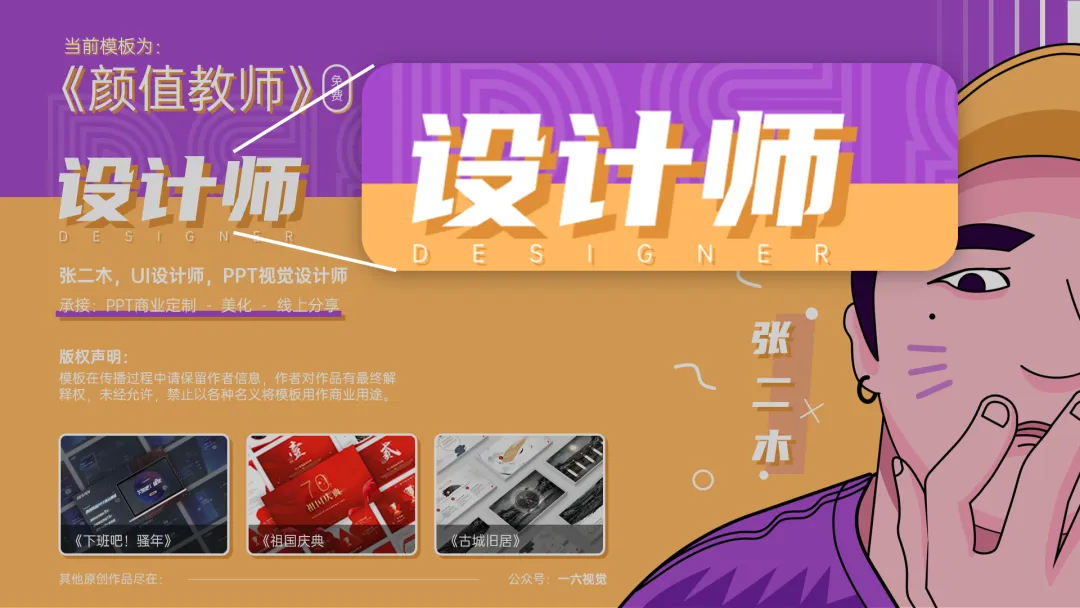 这样叠字的方式会让标题变得更加出彩,例如我在 PPT 模板留的广告位就用上了这样的设计技巧: