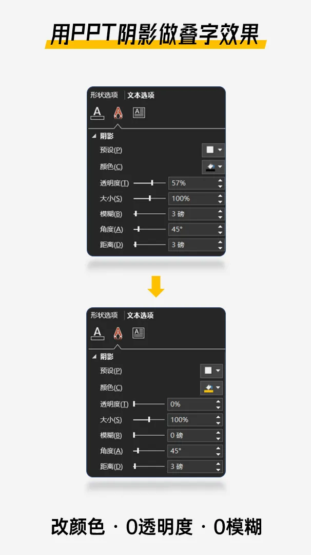 那我们应该怎么用 PPT 阴影实现叠字效果呢?