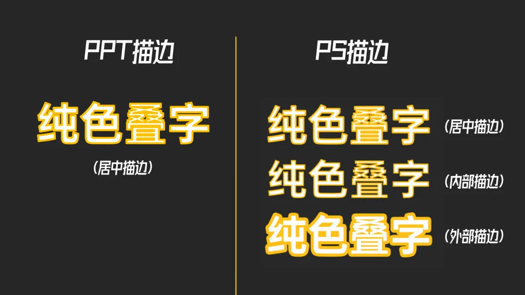 居中描边的线条越粗,文字就越难识别,而从视觉效果来看,外部描边的效果是三者中最好的。