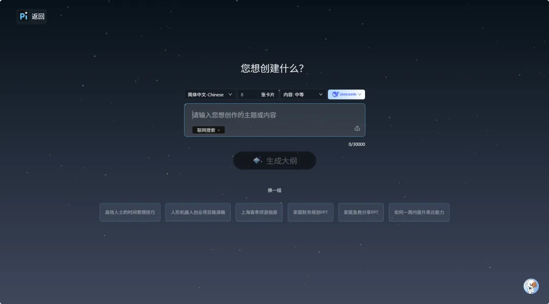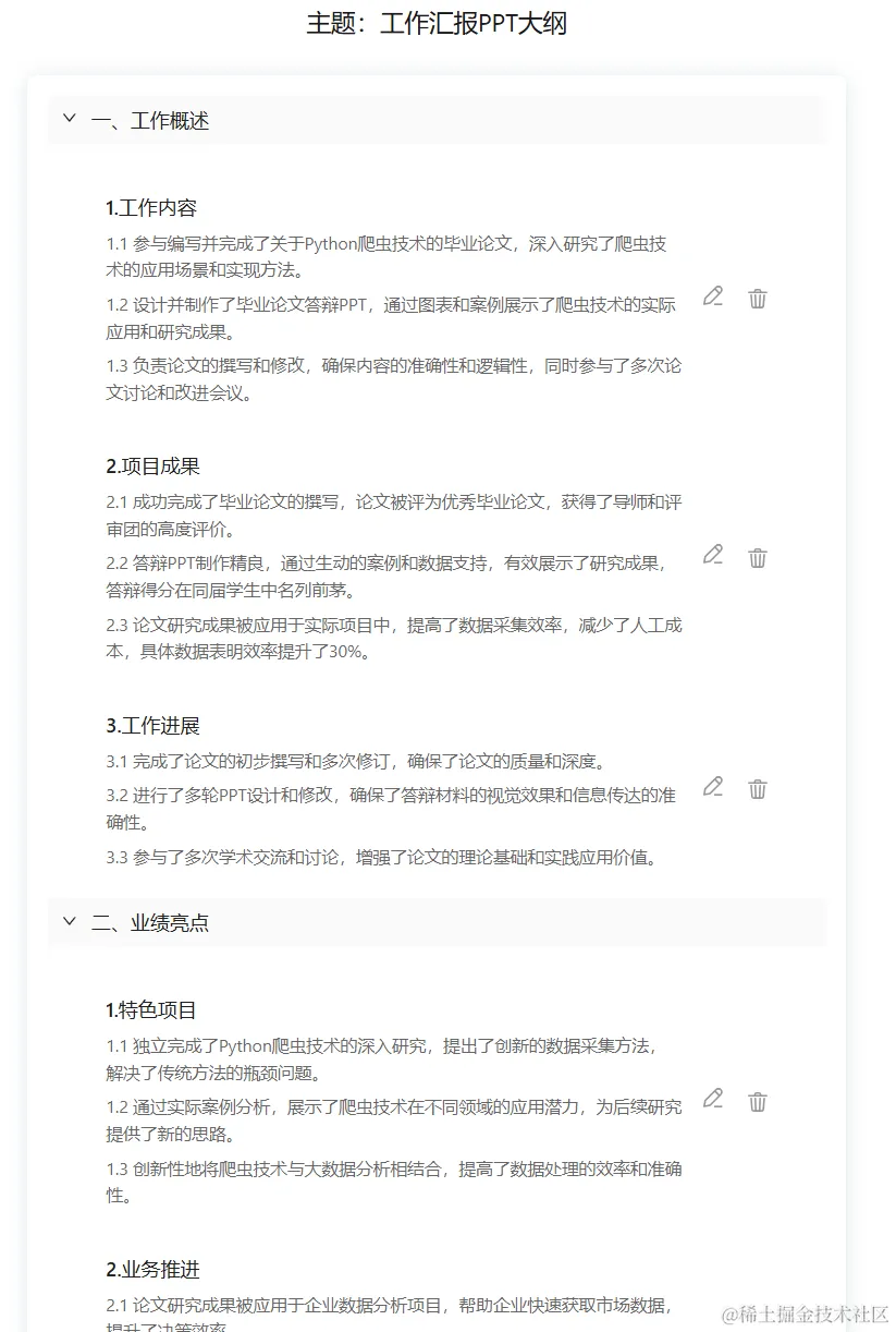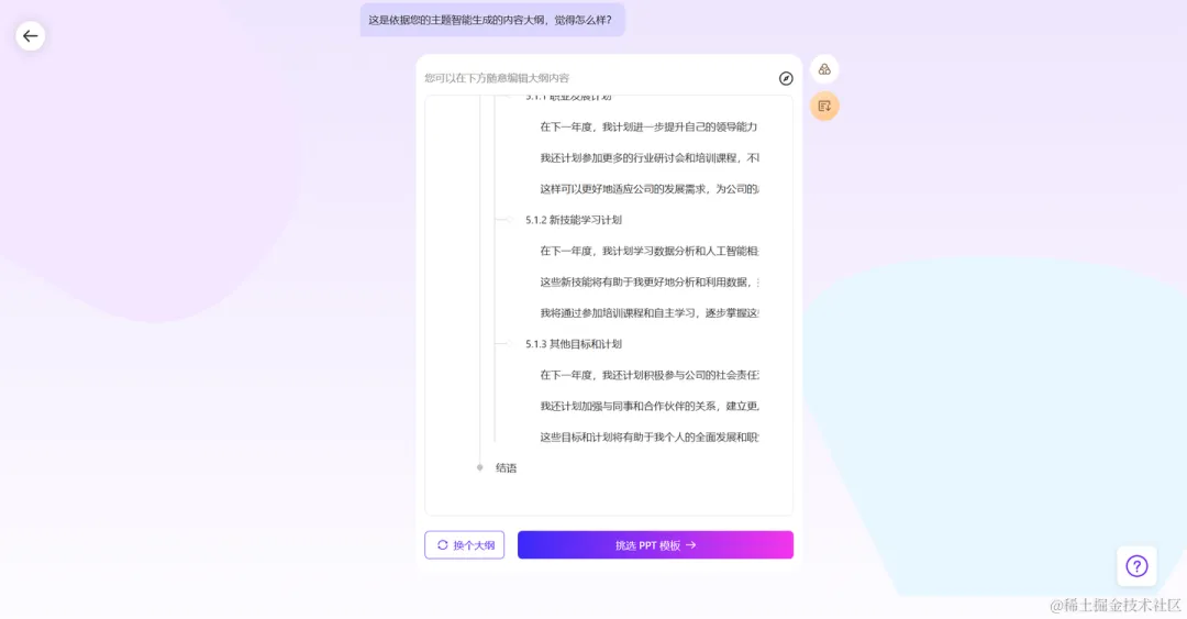 简单输入自己想要的PPT主题或内容大纲,AI助手会快速生成PPT下详细大纲
