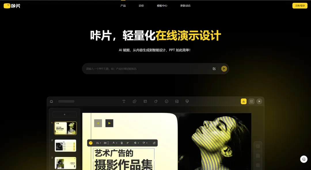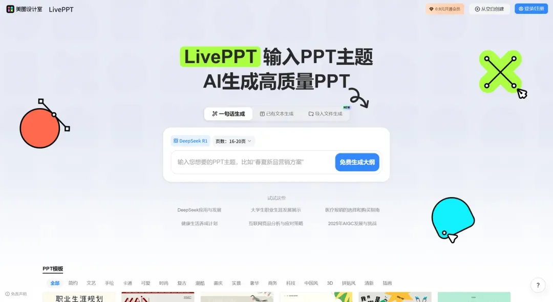 美图旗下AI在线设计工具,提供海量模板一键生成专业幻灯片,免费快速生成PPT、美化PPT,支持DeepSeek R1,新用户提供免费下载次数