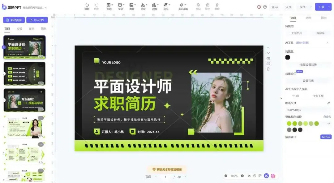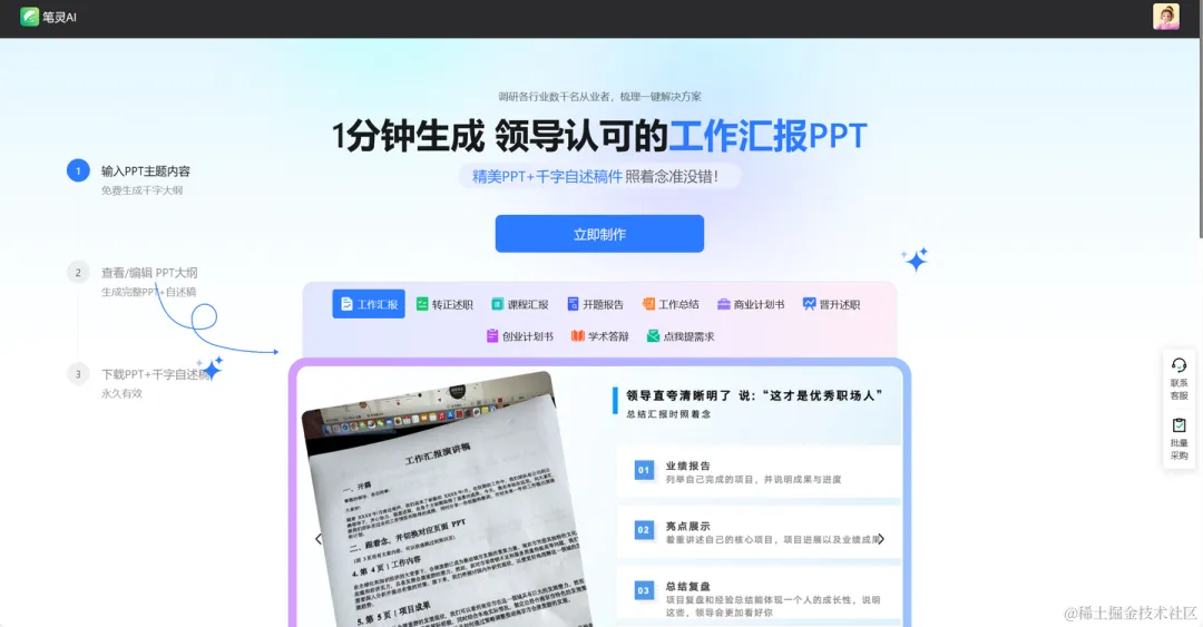 笔灵PPT专注于AI毕业论文写作、AI毕业设计和生成AI答辩PPT,1分钟快速生成精美PPT+千字自述稿件。免费生成PPT大纲
