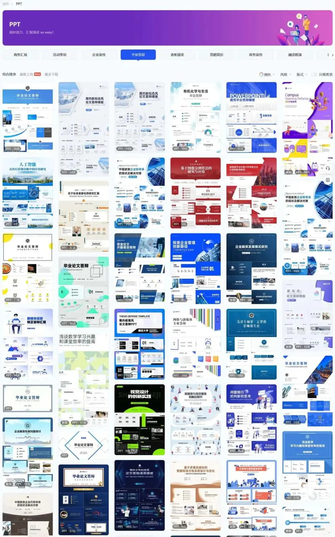 稿定 PPT 更偏向商业设计,如果你想做的 PPT 既要专业又要好看,选它准没错,模板多还能商用,日常汇报、大型提案都能 hold 住。
