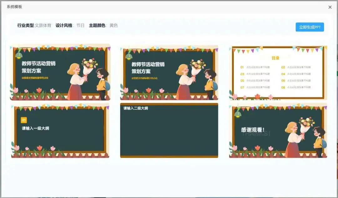 ✨✨✨文末有14款AI生成PPT工具推荐以及传送门,老师们也可以尝试其他的平台
