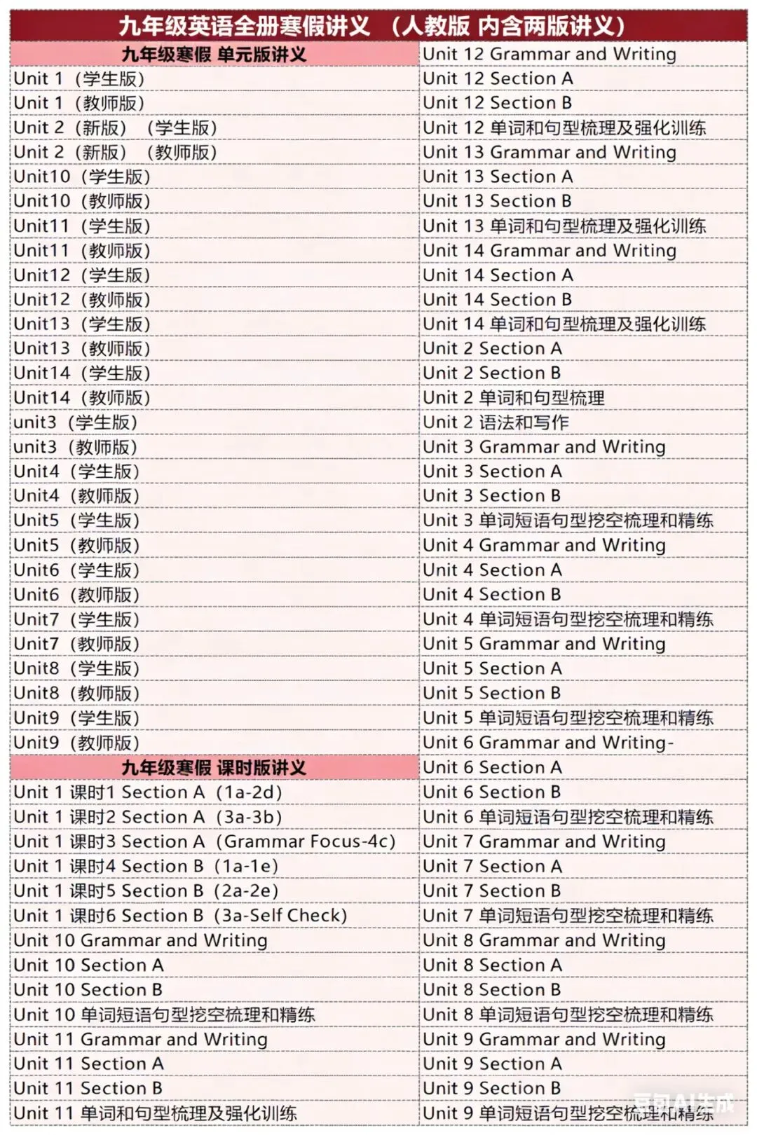 ③2025版9年级寒假九年级全册梳理,教师版❗学生版Unit1-Unit14,讲义有两版,一版为课时型讲义。一版为综合型单元讲义,内含词汇,知识点,语法、小测。讲练结合十分优质。送学生教材课本