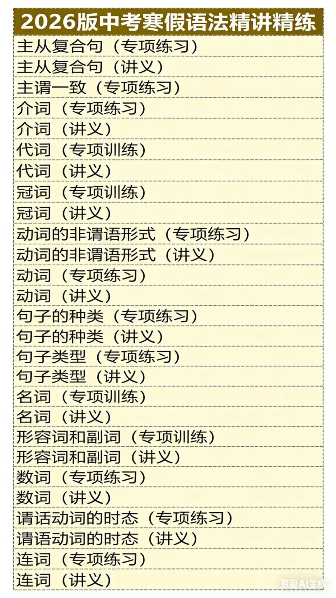 ④2026版9年级寒假大一轮语法复习,教师版❗学生版,全面涵盖中考所涉及的各类语法知识点,包括词法、句法、时态、语态、非谓语动词等及丰富多样的题型,有讲有练举一反三。
