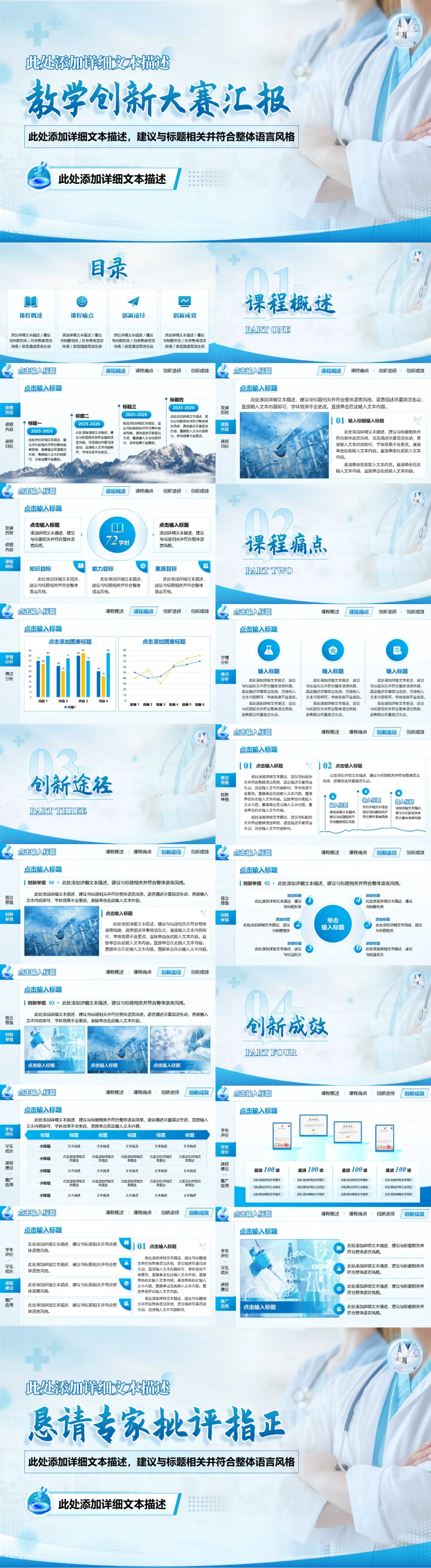 >【PPT模板】教学创新大赛汇报PPT模板(淡蓝医学)
