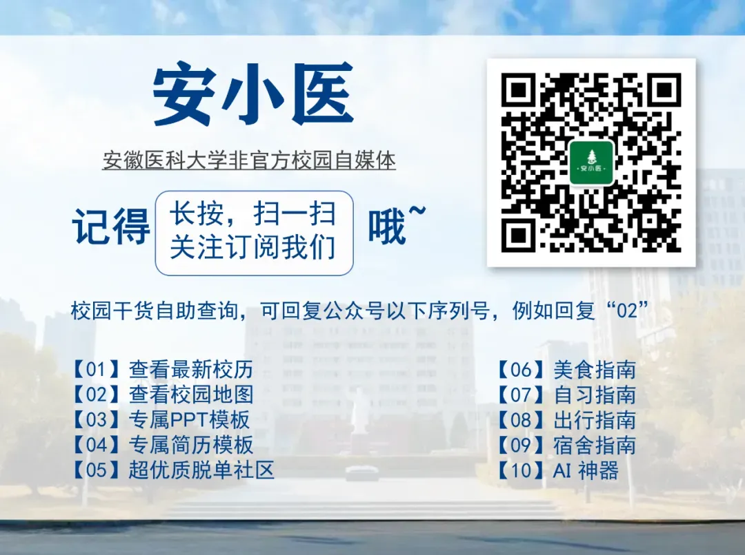 获取方式:扫码关注【安小医】后台回复: 安徽医科大学