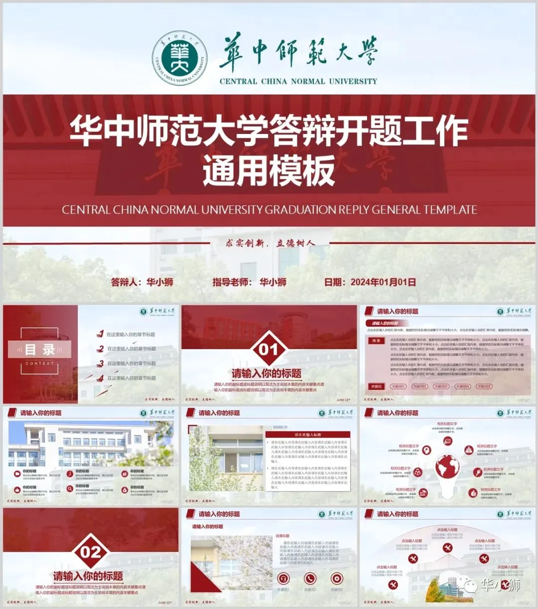“华中师范大学”PPT模板来了!