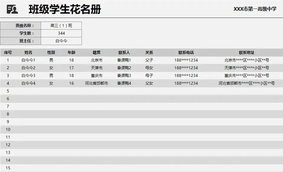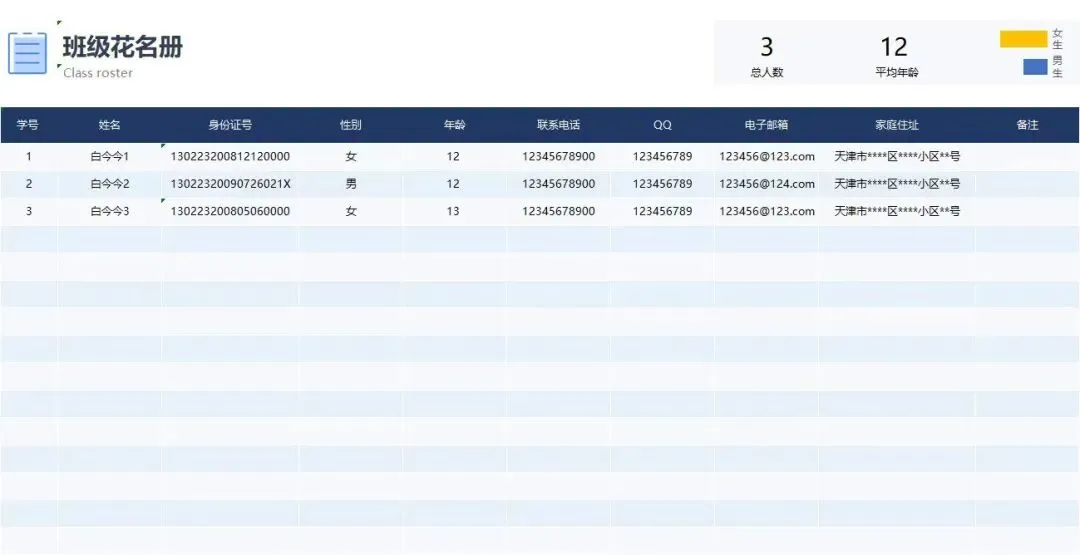 老师必备!班级学生成员花名册PPT模板