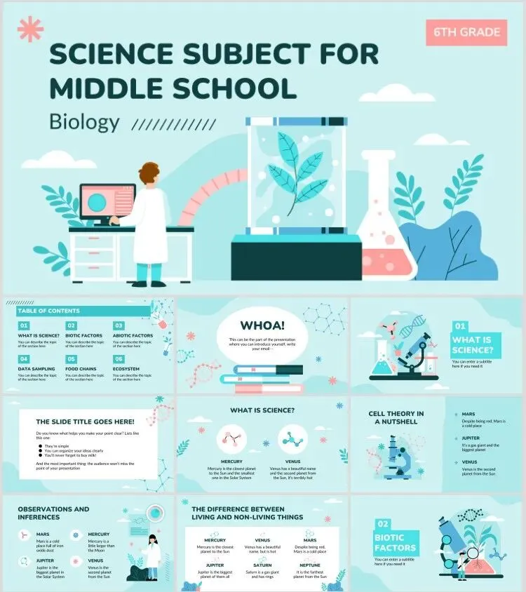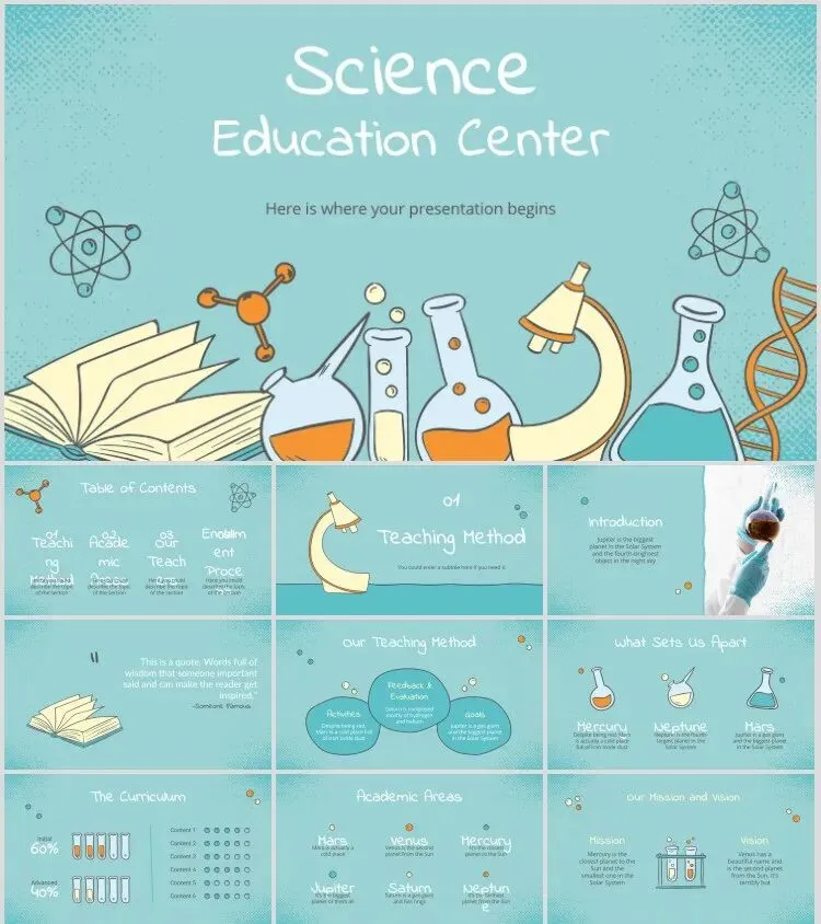 - 配色与版式:简洁严谨主色调建议选择蓝色、绿色等贴合 “科学感” 的色系,避免花哨配色;版式采用网格布局,图文对齐,保持页面整洁统一。