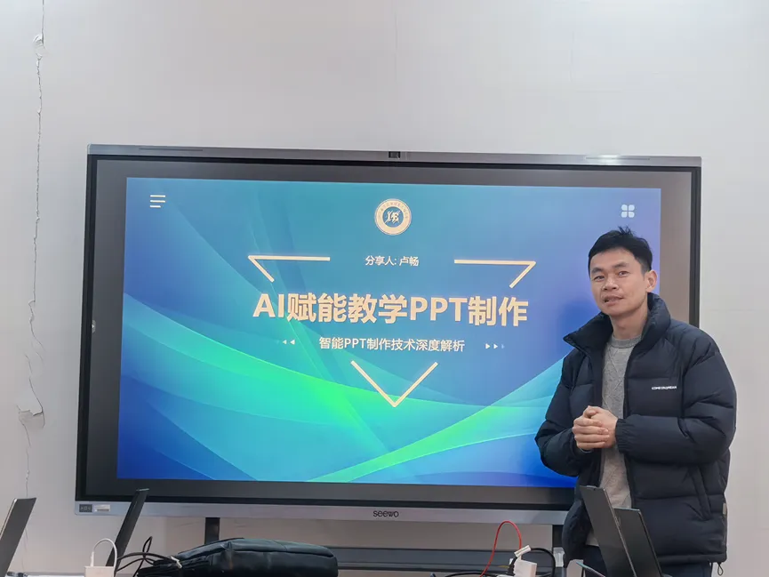 为深入贯彻落实人工智能与教育融合发展的新趋势,推动智能技术在课程设计和PPT制作中的深度应用,提升教师教学课件制作水平。12月30日上午9时,信息工程学院在文理楼222成功举办了主题为“AI赋能教学PPT制作技术”的分享会。此次分享会特别邀请到了计算机中心主任卢畅老师作为主讲嘉宾。信息学院20余教师参加交流,报告会由学院院长刘志松教授主持,副院长宿刚、副书记郑琳出席活动。