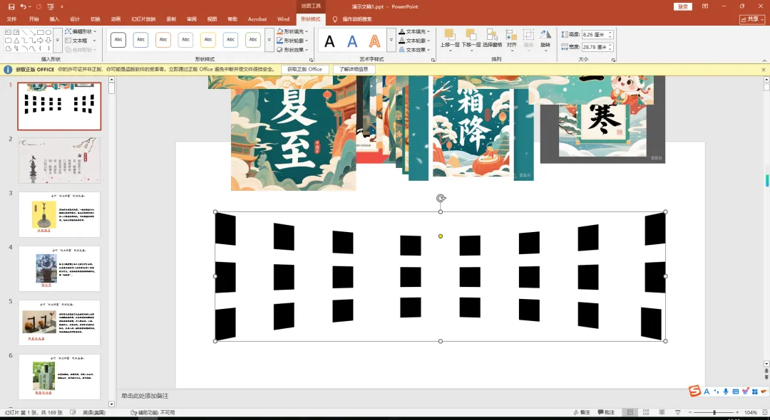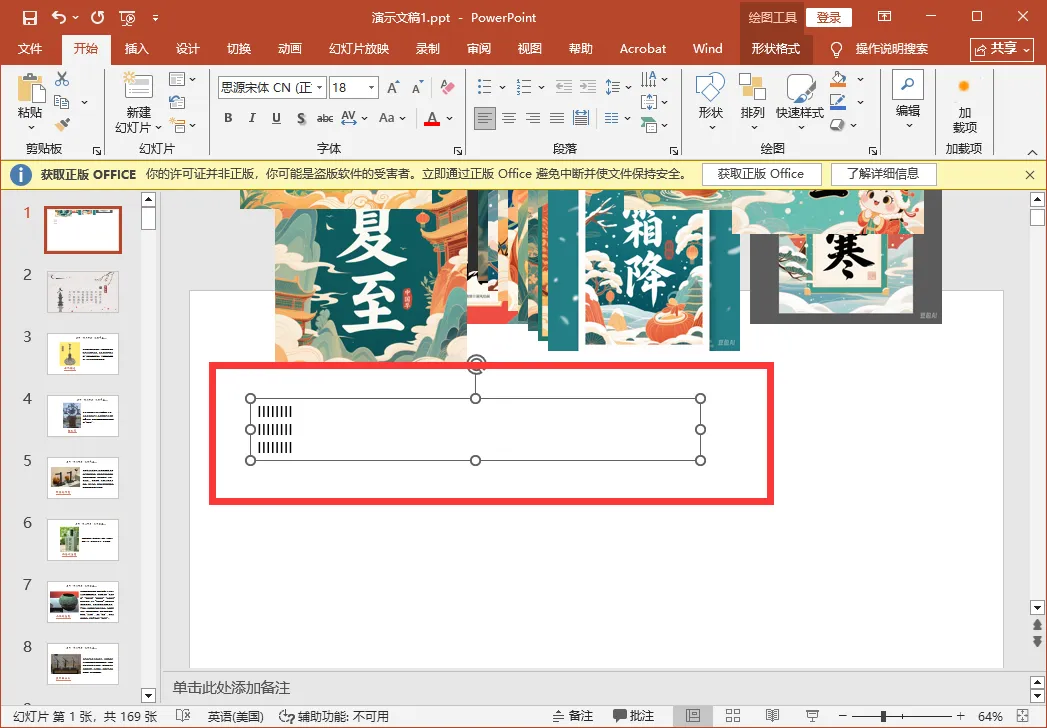 ps:这一步一定要拉好文本框的大小和比例(比如拉大到ppt页面大小,全屏时看起来比较协调),否则后面合并图形后会导致无法整体改变高低。