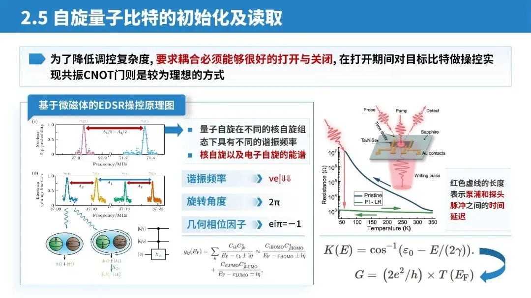 2. 专业可视化卓越,有效构建技术可信度面对量子调控等抽象概念,模板未回避公式与原理,而是通过 EDSR操控原理图、量子干涉效应公式、关键指标数据表 等进行精准可视化。这不仅证明了研究者对领域的深刻掌握,更将 “保真度>99.99%”、“退相干时间600 ms” 等硬核成果转化为直观、可信的技术壁垒,显著提升了答辩的专业说服力。