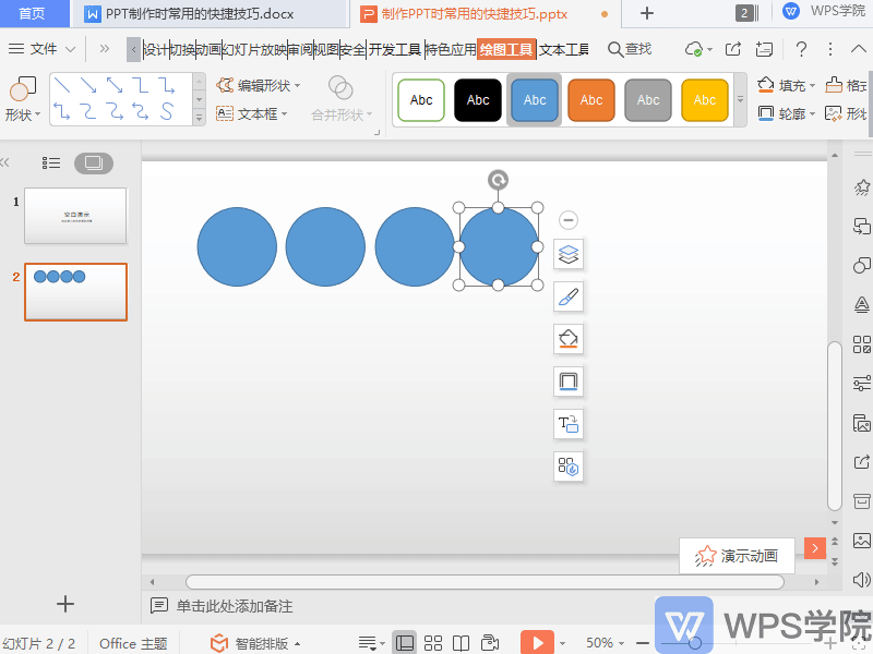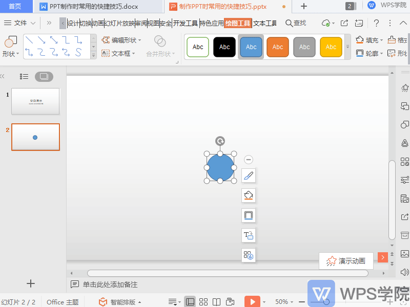 ■按住Ctrl键,推动鼠标滚轮,可以快速放大/缩小幻灯片页面。