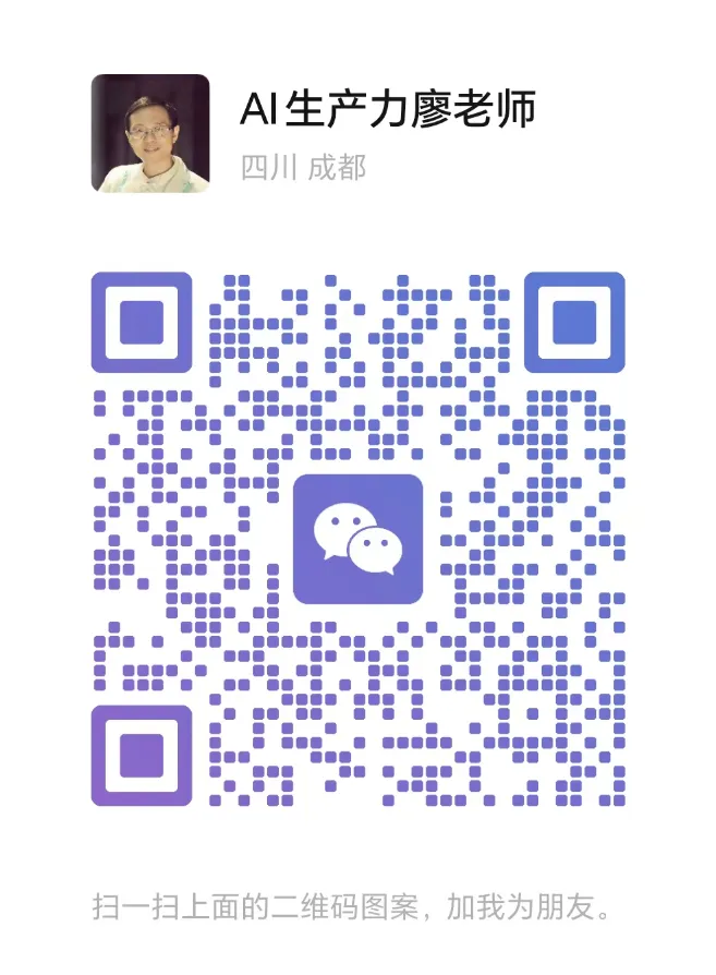 大家好,我是廖老师,电子科大计算机硕士,22年软件开发及管理经验。专注于AI的全面应用与AI全栈开发技术、分享关于「AI职场/AI自媒体/智能体/AI编程/RPA自动化」的干货,欢迎关注公众号。这篇文章要写什么?