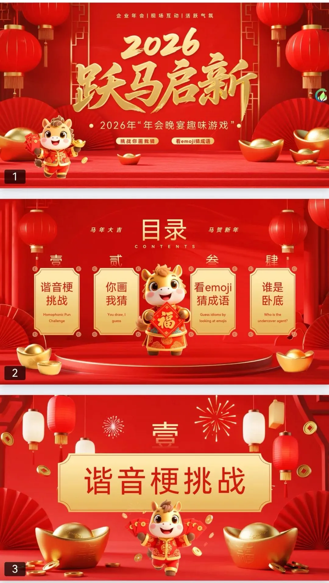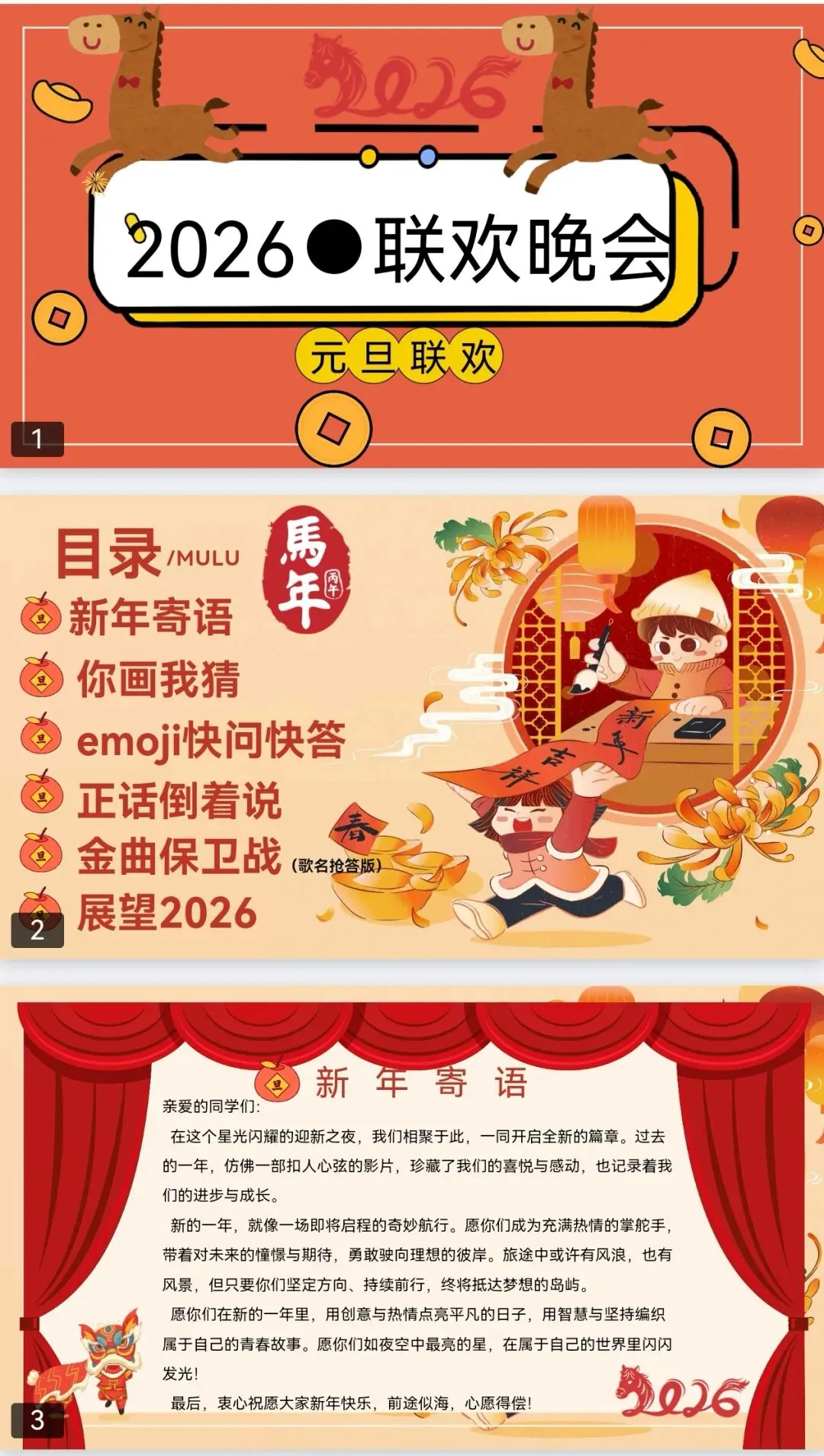 1﹣新年PPT2﹣年会游戏PPT3-word主持稿2026班级联欢晚会