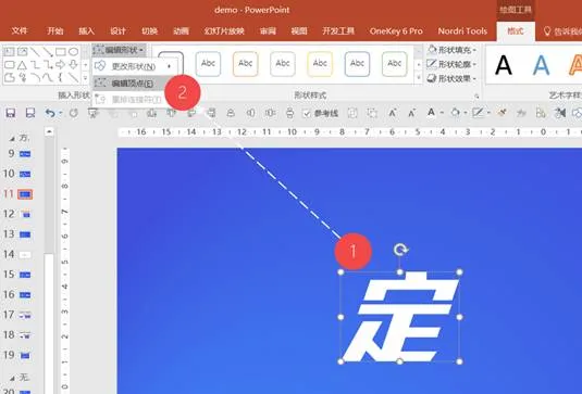 b. 接下来是顶点编辑,选中「定」字,单击【格式】-【编辑形状】-【编辑顶点】,进入顶点编辑状态。