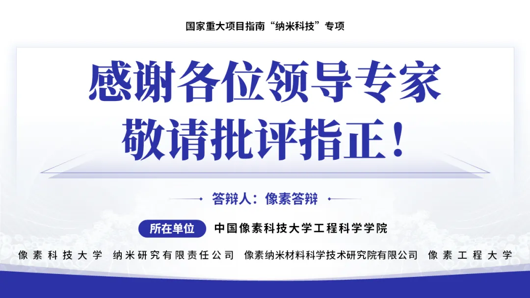 视觉统一科技蓝调,契合纳米材料主题;复杂分子机制、工艺路线用示意图简化呈现;核心创新点、量化数据、预算占比加粗标注;子标题层级清晰,文字精炼不堆砌,兼顾学术严谨性与评审阅读效率,最大化传递项目核心价值。