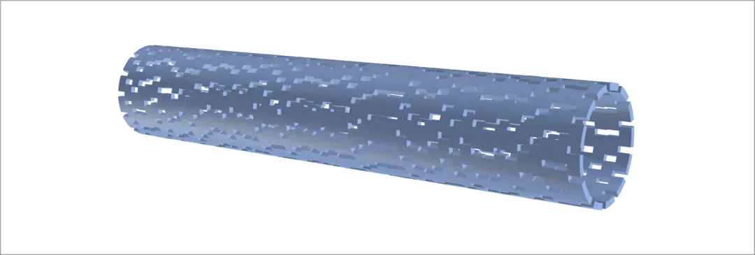 组合所有形状并组合,进行三维旋转,这里选择的是预设中的角度-透视:右向对比,具有多孔结构的管结构就绘制完成了。
